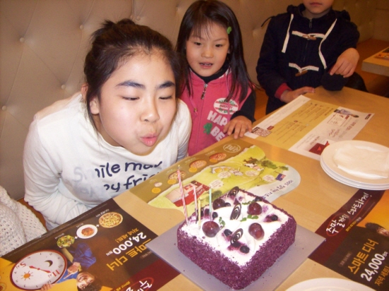 ¿ì¸®ÁýÀÇ Å« ¾ÆÀÌÀÎ ÇýÀ±ÀÌÀÇ »ýÀÏÀ» ¸Â¾Æ ¿¹»Û ºí·çº£¸® ÄÉÀÍÀ» ÁغñÇÏ¿© ÇÇÀÚÇê¿¡¼­ ÆÄƼ¸¦ ÇÏ¿´´ä´Ï´Ù. ¸ðµÎ µÑ·¯ ¸ð¿© ³ë·¡¸¦ ºÎ¸£°í, ¹Ìó ¼±¹°À» ÁغñÇÏÁö ¸øÇÑ Å«¾ö¸¶²²¼­´Â ¿ëµ·À» Á̴ּä´Ï´Ù.^^