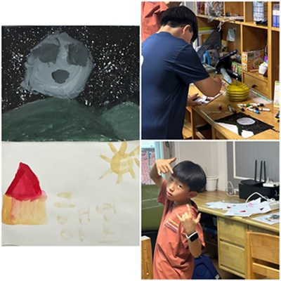 À¯¾ÈÀÌ Çб³ Áغñ¹°·Î ¹Ì¼ú¿ëǰÀ» ±¸¸ÅÇß¾î¿ä. »õ ¹°°ÇµéÀ» ¹Ù·Î »ç¿ëÇÏ°í ½Í¾ú´ø °ÇÁö ¿©°¡½Ã°£À» Àç¹ÌÀÖ°Ô º¸³»°í ½Í¾ú´ø °ÇÁö "À̸ð! ÀúÈñ°¡ ±×¸² ±×·Á µå¸±²²¿ä."ÇÏ¸ç °¡¹æ¿¡ ì°Üµ×´ø µµ±¸µéÀ» Çϳª µÑ¾¿ ²¨³À´Ï´Ù. ±×¸²À» ±×¸± Áغñ¸¦ ¸¶Ä¡°í "À̸ð´Â º¸Áö ¸¶¼¼¿ä! ÀúÈñ°¡ ´Ù ÇÏ¸é ºÎ¸¦²²¿ä."¶ó¸ç À̸𸦠¹æÀ¸·Î µî ¶° ¹Ð°í´Â °Å½Ç¿¡¼ ¿ô´Â ¼Ò¸® Çѹø ¾øÀÌ ÁøÁßÇÑ ½Ã°£À» º¸³Â½À´Ï´Ù. ÇÑ ÂüÀÇ ½Ã°£ÀÌ Áö³ª°í ¾ÆÀ̵éÀÇ ºÎ¸§¿¡ ³ª°¡º¸´Ï ÀÌ·¸°Ô ¿¹»Û ±×¸²À» ±×·Á ÀÌ¸ð¿¡°Ô ¼±¹°ÇÕ´Ï´Ù. Áø¿õÀÌ´Â ÀÚ½ÅÀÌ ÁÁ¾ÆÇÏ´Â ´ÞÀ» ±×·È°í, À¯¾ÈÀÌ´Â ÁýÀ¸·Î µ¹¾Æ¿Â À̸𸦠ȯ¿µÇÑ´Ù¸ç Áý°ú À̸§À» Àû¾ú´Ù°í Çϳ׿ä. º×¿¡ ¹¯À» ¹°°¨À» »Ñ·Á º°À» Ç¥ÇöÇÑ Áø¿õÀÌÀÇ ½ºÅ³°ú È»çÇÑ »ö°¨À¸·Î ±âºÐ ÁÁ°Ô º¸ÀÌ´Â À¯¾ÈÀÌ ±×¸²À» º¸´Ï ĪÂùÀ» ¾È ÇÒ ¼ö °¡ ¾ø½À´Ï´Ù~ ´ÙÀ½¿¡ ¶Ç ±×·ÁÁشٴµ¥ ¾î¶² ±×¸²À» ±×¸±Áö ¹ú½á ±â´ë°¡ µÇ³×¿ä!