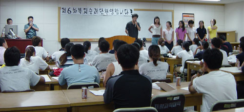 2004³â 7¿ù 30ÀÏ º¹Áö¼ø·Ê´ÜÀÌ ´ë¾È°¡Á¤¿îµ¿º»ºÎ¿Í ¿ì¸®º¹Áö½Ã¹Î¿¬ÇÕÀ» ¹æ¹®Çß½À´Ï´Ù. ¿ÀÀü¿¡´Â ´ë±¸´ë ÷´Ü°ÀǽÇÀ» ºô·Á °¢ ´Üü »ç¹«±¹ÀåÀÌ °ÀǸ¦ Çϰí, ¿ÀÈÄ¿¡´Â Á¶¸¦ ³ª´©¾î Åä·ÐÇÏ´Â ½Ã°£À» °¡Á³½À´Ï´Ù. º¹Áö¼ø·Ê´ÜÀÇ ±â°ü¹æ¹®Àº ¿ÃÇØ·Î 3³â°ÀÔ´Ï´Ù. ´Ü¿øµéÀÇ ±¤±â¿¡ °¡±î¿î ¿±â´Â ´Ã ¿ì¸®¿¡°Ô ½Å¼±ÇÑ ÀÚ±ØÀÌ µÇ°ï ÇÕ´Ï´Ù.