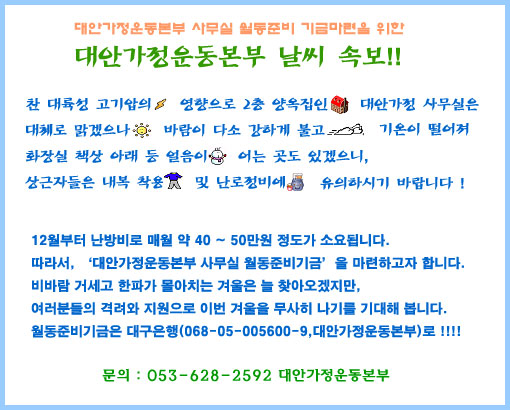 »ç¹«½Ç ¿ùµ¿Áغñ±â±Ý ¸¶·ÃÀ» À§ÇÑ ³¯¾¾¼Óº¸