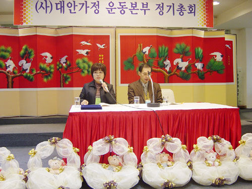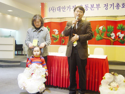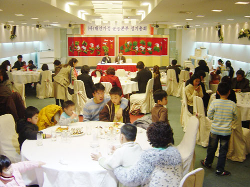´ë¾È°¡Á¤¿îµ¿º»ºÎ Á¤±âÃÑȸ°¡ 2005³â 2¿ù 17ÀÏ(¸ñ) Áø¼®Å¸¿ö ¿þµùȦ¿¡¼ °³ÃֵǾú½À´Ï´Ù. 6½Ã 30ºÐºÎÅÍ ÀÚÀ¯·Ó°Ô ½Ä»ç¸¦ ÇÏ¸é¼ ±³À縦 ³ª´©°í, 7½Ã 30ºÐºÎÅÍ ÃÑȸ¸¦ ½ÃÀÛÇß½À´Ï´Ù. ÃÑȸ¸¦ ¸¶Ä£ ÈÄ¿¡ °¢ ´ë¾È°¡Á¤ °¡Á·µéÀ» ¼Ò°³ÇÏ¸ç ¼±¹°¹Ù±¸´Ï¸¦ Àü´ÞÇÏ´Â ½Ã°£À» °¡Á³½À´Ï´Ù. Á¶ÃÍÇÑ ¼±¹°À̾úÁö¸¸ ¾ÆÀ̵éÀº ³Ê¹« ÁÁ¾ÆÇß½À´Ï´Ù. °¢¾ç°¢»öÀÇ ÃÝÄÚ·¿ÀÌ °¡µæ ´ã°ÜÀÖ¾ú°Åµç¿ä. ´ë¾È°¡Á¤ °¡Á·µéÀÇ ÇÕâ°ú Àå±âÀÚ¶û, ¿¹Á¤¿¡ ¾øÀÌ Áï¼®¿¡¼ ÀÌ·ç¾îÁø ÀÌ»ç´ÔµéÀÇ ³²¼ºÁßâ°ú ÀåÈ¿Á¡ »ó´ã¿øÀÇ À²µ¿À¸·Î ¸ðµÎµé Áñ°Ì°í µû½ºÇÑ ½Ã°£À» °¡Á³½À´Ï´Ù.