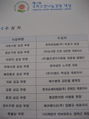 2007³â 7¿ù 13ÀÏ, ¿©Àǵµ ±¹¹ÎÀϺ¸ º»»ç¿¡¼ Á¦1ȸ Å©¸®½ºÃµ ³ª´®°æ¿µ ´ë»ó ¼ö»ó½ÄÀÌ ÀÖ¾ú½À´Ï´Ù.