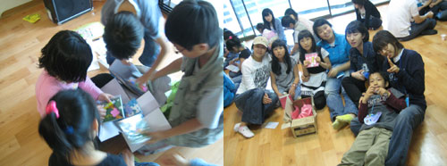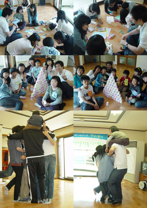 °¢ÀÚ Àڱ⠸íÂûÀ» ¸¸µé°í, µÎ ÆÀÀ¸·Î ³ª´©¾î Á¾ÀÌÄÅ ½×±â¿Í ½Å¹®Áö À§¿¡ ¿Ã¶ó°¡±â¸¦ Çß½À´Ï´Ù.