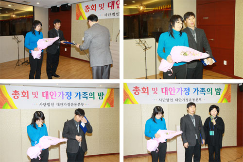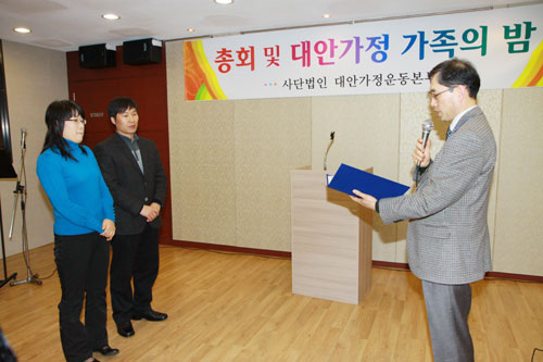 2010³â 1¿ù 28ÀÏ, Áø¼®Å¸¿öºÎÆä½Ä´ç¿¡¼ ´ë¾È°¡Á¤¿îµ¿º»ºÎ Á¤±âÃÑȸ ¹× '´ë¾È°¡Á¤ °¡Á·ÀÇ ¹ã'À» °³ÃÖÇÏ¿´½À´Ï´Ù.