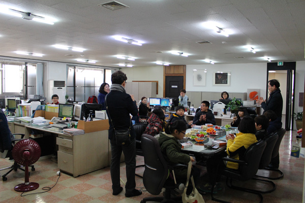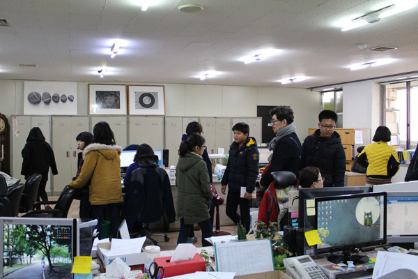 ¾ÆÀ̵éÀÌ »ç¹«½ÇÀ» µÑ·¯º¸¸ç ÀÛ¾÷À» ÇϽô ¸ð½ÀÀ» »ìÆìº¸¾Ò¾î¿ä.