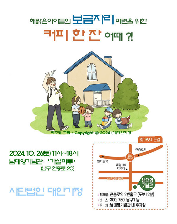 2024³â 10¿ù 26ÀÏ(Åä) 11½Ã~18½Ã, ³²´ë¿µ±â³ä°ü(°¡½Ç¸¶·ç)¿¡¼ ÈÄ¿øÂþÁýÀ» °³ÃÖÇÕ´Ï´Ù. ¿ÃÇØµµ ÇÚÁîÄ¿ÇÇÀÇ ÇùÂùÀ¸·Î ¸ÀÀÖ´Â Ä¿ÇÇ¿Í À½·á¸¦ ÁغñÇÕ´Ï´Ù. ¶Ç ±¸¸ÅÇϽŠƼÄÏÀ¸·Î ´Ù¾çÇÑ ¼Òǰ°ú ÇÚÁîÀÇ Á¦Ç°µéµµ ±¸¸ÅÇÏ½Ç ¼ö ÀÖ½À´Ï´Ù.
